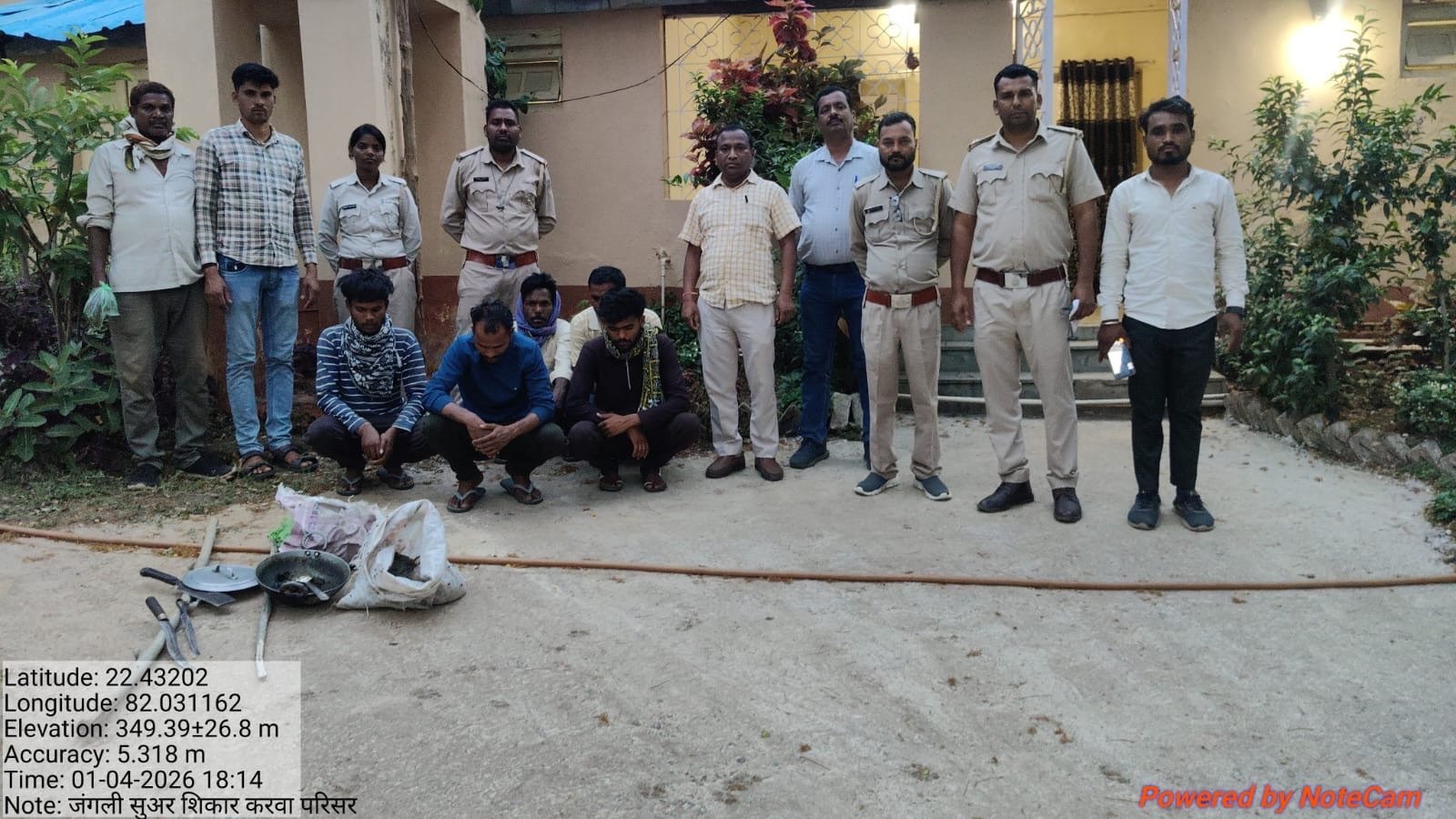 प्राप्त जानकारी के अनुसार, वनमंडल अधिकारी बिलासपुर श्री नीरज के निर्देशानुसार तथा उपवनमंडल कोटा के अधिकारी श्री अनिल भास्करन के मार्गदर्शन में, वन परिक्षेत्र अधिकारी बेलगहना श्री देव सिंह मरावी के नेतृत्व में दिनांक 31 मार्च 2026 को कार्रवाई की गई। वन विभाग को मुखबिर के माध्यम से सूचना मिली थी कि अट्टडा गांव में एक नर जंगली सुअर का शिकार कर उसका मांस पकाया जा रहा है।
