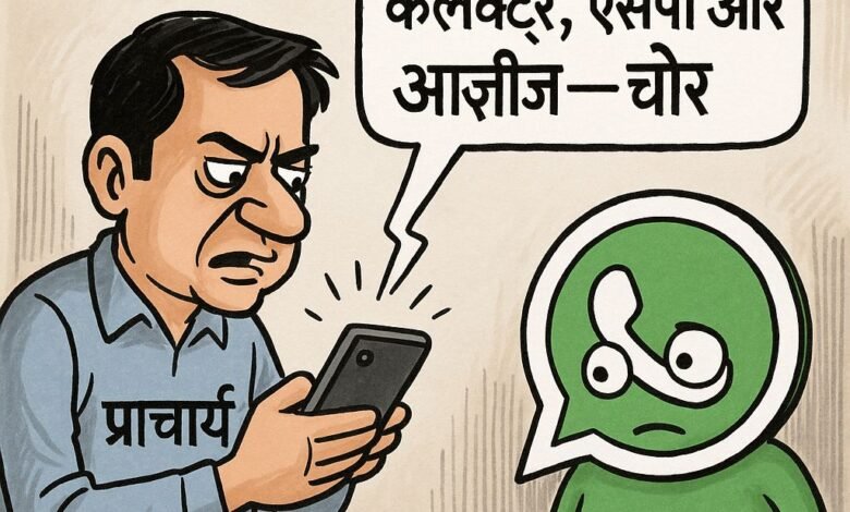 नवीनतम मामले में प्राचार्य मनीष वर्मा ने शिक्षकों के व्हाट्सएप ग्रुप में आपत्तिजनक टिप्पणी करते हुए कलेक्टर, एसपी और आईजी तक को “चोर” लिख डाला। उनका यह मैसेज ग्रुप में तेजी से वायरल हुआ और अब शिक्षा जगत में आक्रोश फैल गया है।