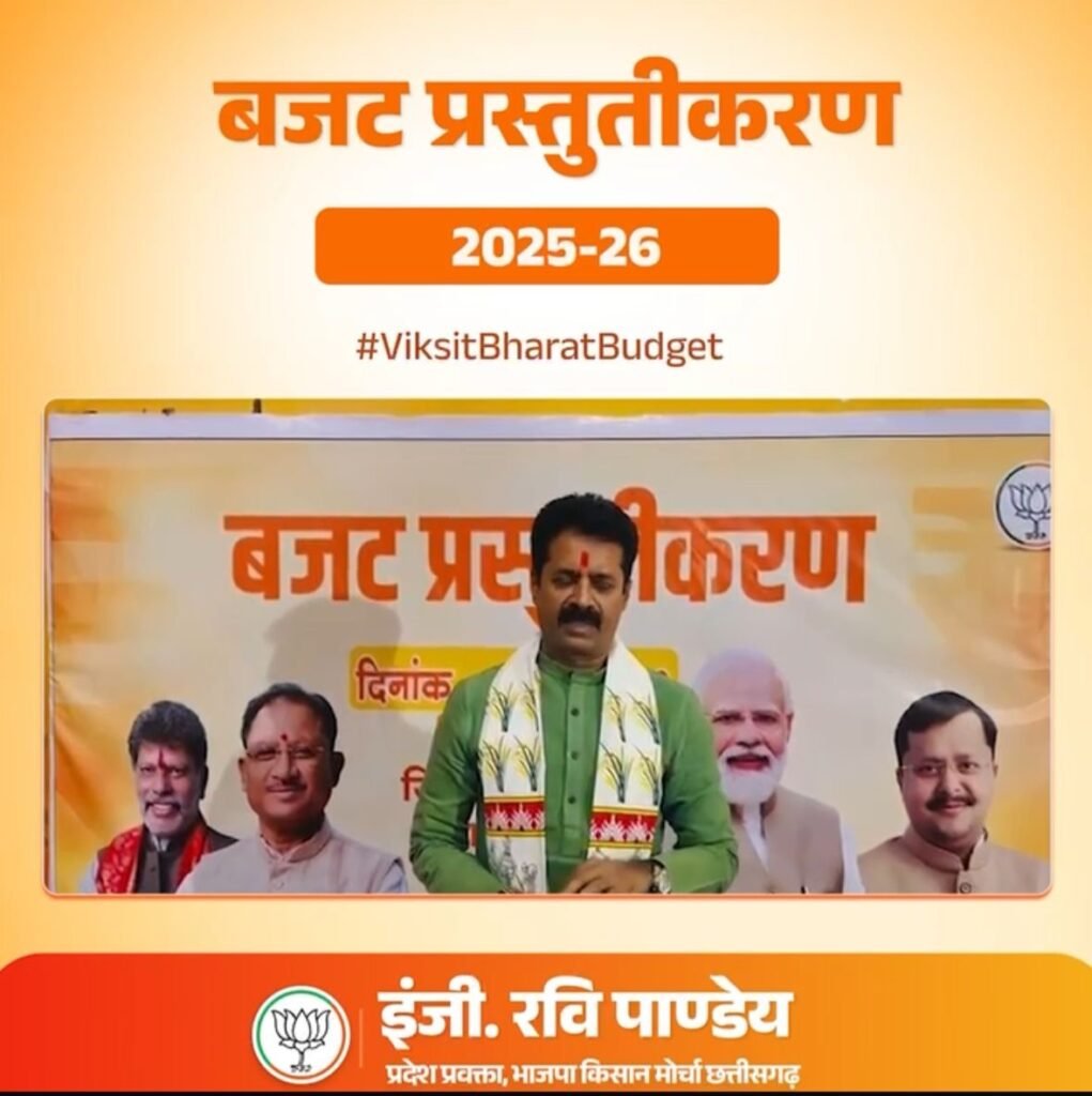 जांजगीर चांपा: केंद्र सरकार का बजट किसान, गरीब और विकास को समर्पित बजट है उक्त बातें भाजपा किसान मोर्चा के प्रदेश प्रवक्ता एवं प्रदेश बजट प्रचार समिति के सदस्य इंजी. रवि पाण्डेय ने कहीं । उन्होंने आगे कहा यह बजट किसानों, युवाओं, महिलाओं और मध्यम वर्ग को सशक्त बनाने वाला तथा विकसित भारत के संकल्प को मजबूती देने वाला बजट है।
