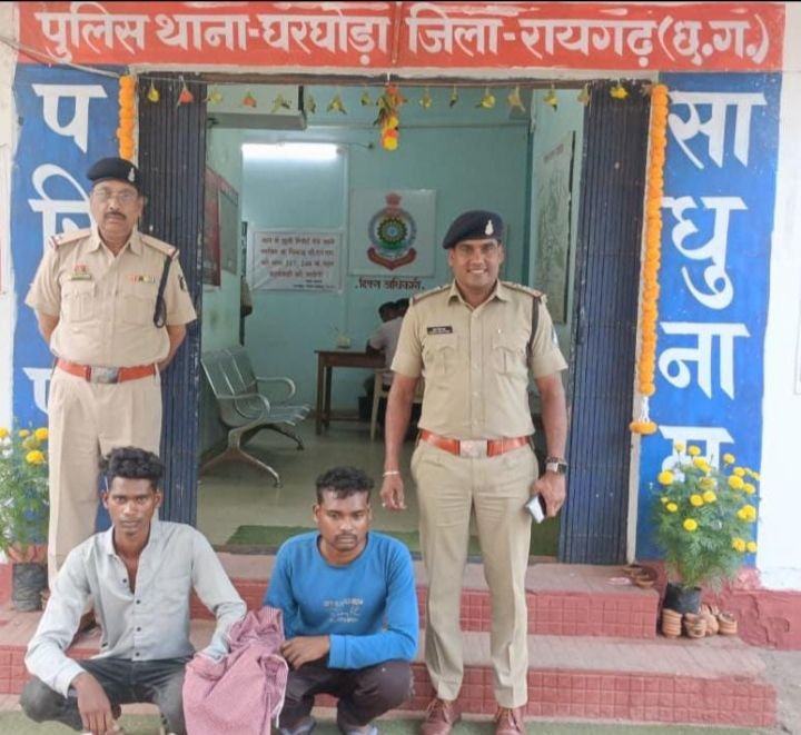 2) ओमप्रकाश राठिया (32 वर्ष) पिता सेतराम राठिया, निवासी ग्राम कपाटडेरा भेण्ड्रा, थाना घरघोड़ा — को गिरफ्तार किया गया है।