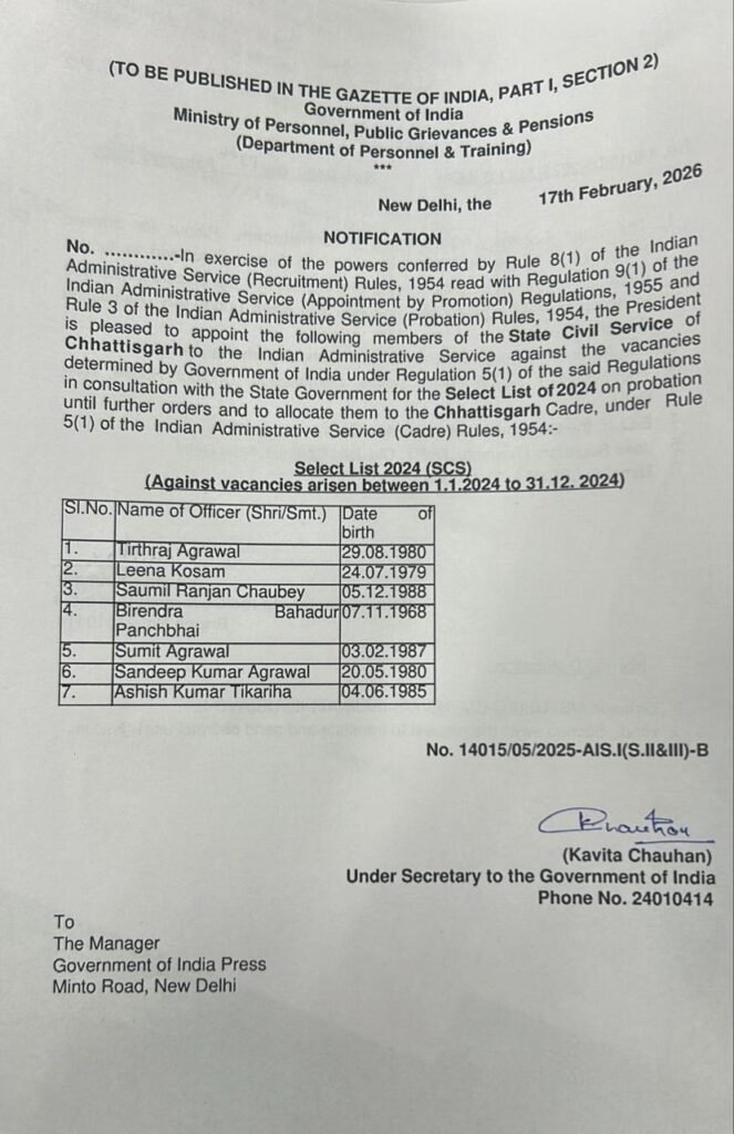 CG IAS Award News:– सात राज्य प्रशासनिक सेवा के अफसरों को आईएएस अवॉर्ड,दो सगे भाइयों को एक साथ हुआ आईएएस अवॉर्ड