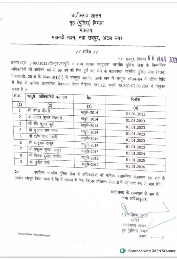 CG IPS News: प्रदेश के आईपीएस अधिकारियों की बढ़ेगी सैलरी, सरकार ने दी वेतनवृद्धि की मंजूरी… देखें आदेश