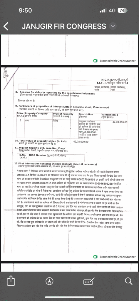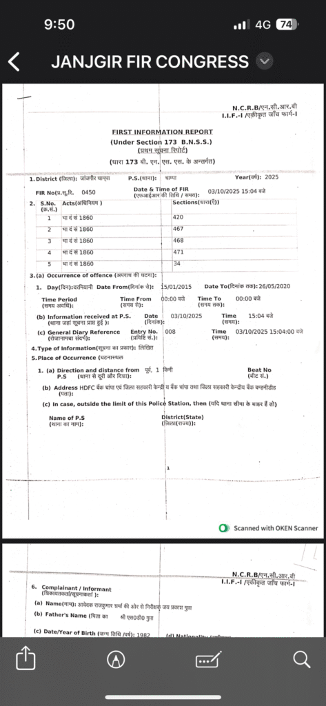 CG News:– छत्तीसगढ़ में कांग्रेस विधायक पर सहकारी बैंक घोटाले का आरोप, धोखाधड़ी और फर्जी हस्ताक्षर के मामले में FIR दर्ज