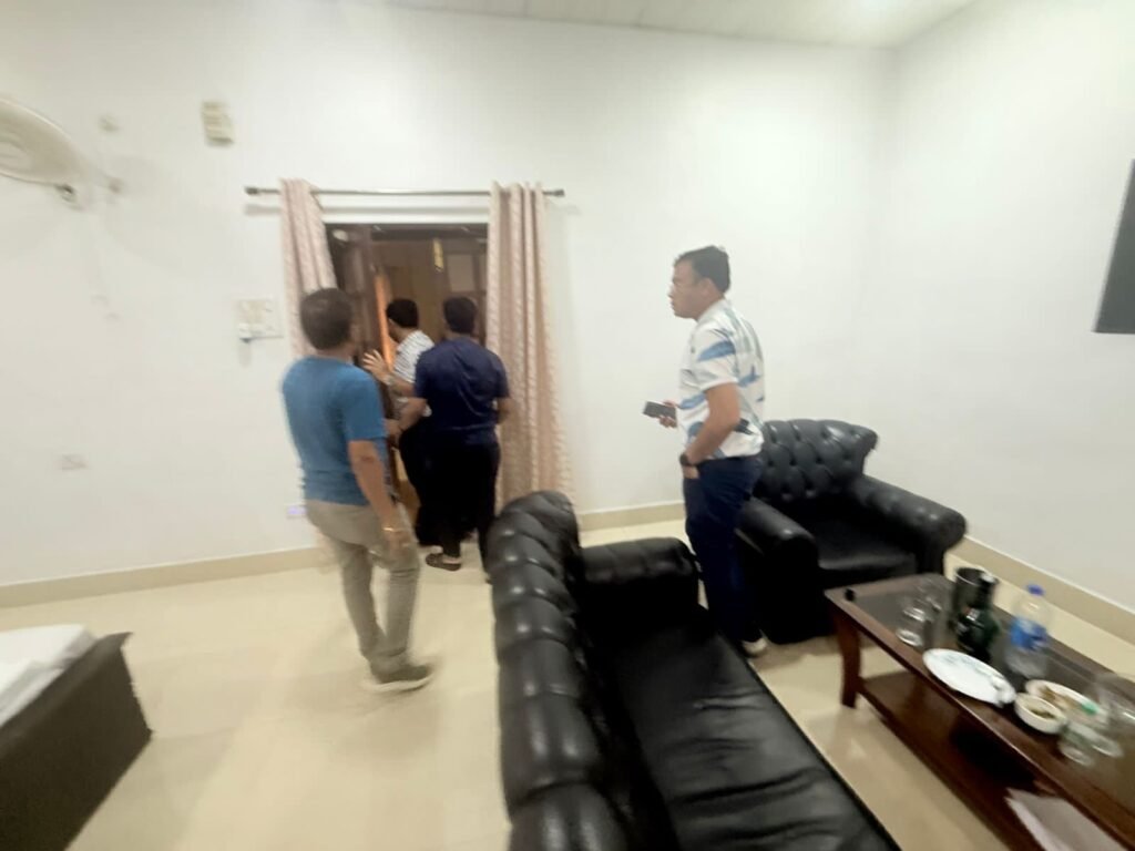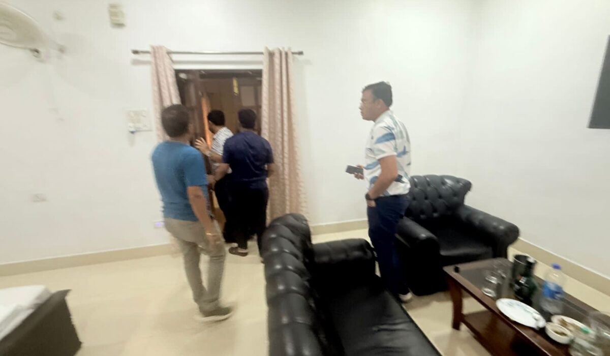 इसी दौरान कुछ कार्यकर्ताओं ने गेस्ट हाउस के एक कमरे से तेज आवाज और सिगरेट के धुएं की शिकायत की, जिसके बाद मामला उजागर हुआ।