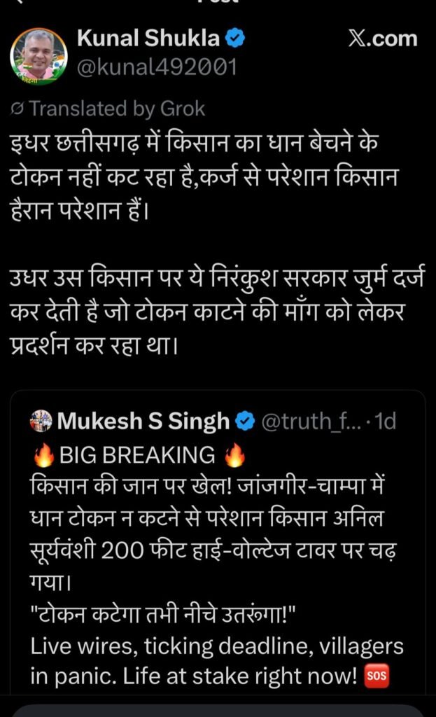 “इधर छत्तीसगढ़ में किसान का धान बेचने के टोकन नहीं कट रहा है, कर्ज से परेशान किसान हैरान परेशान हैं।