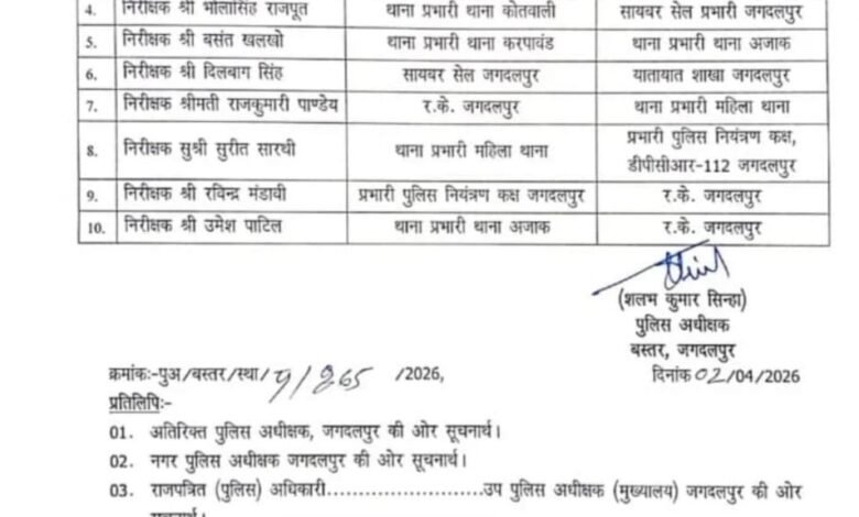 CG Police Transfer News:– एसपी ने किए दस पुलिस निरीक्षकों के तबादले, देखें सूची..
