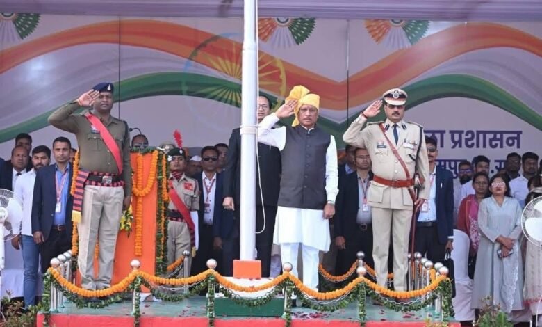 77 वें गणतंत्र दिवस पर मुख्यमंत्री विष्णुदेव साय ने फहराया राष्ट्रध्वज तिरंगा