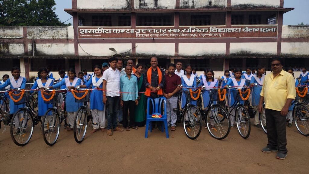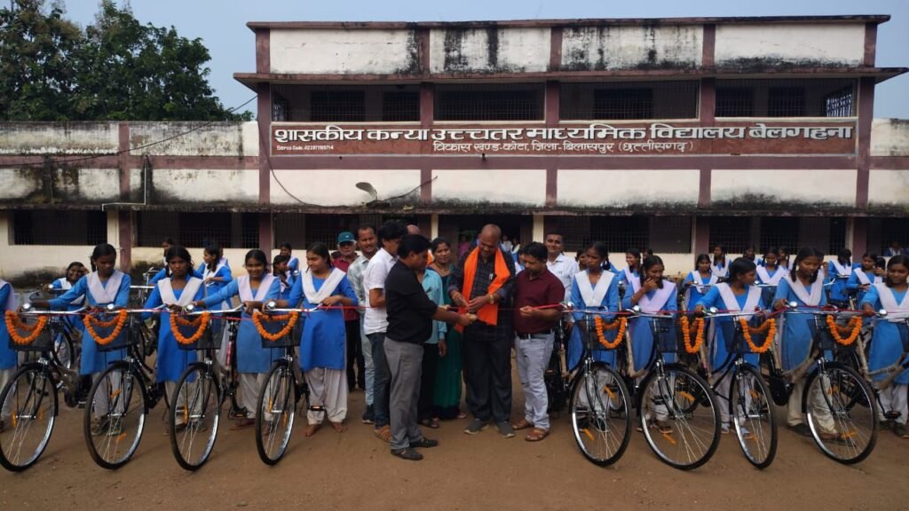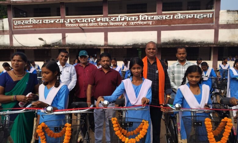 बेलगहना।शासकीय कन्या उच्चतर माध्यमिक विद्यालय बेलगहना का शनिवार का दिन पूरी तरह से बेटियों के नाम समर्पित रहा। प्रदेश सरकार की महत्वाकांक्षी मुख्यमंत्री निःशुल्क सरस्वती साइकिल वितरण योजना के तहत विद्यालय की 58 छात्राओं को साइकिलें प्रदान की गईं। साइकिलें पाते ही बच्चियों के चेहरों पर मुस्कान खिल उठी और पूरा विद्यालय परिसर तालियों की गूंज से भर गया।