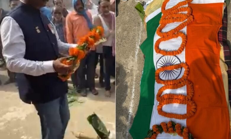 अंतिम यात्रा के दौरान गमगीन माहौल में ‘भारत माता की जय’ और ‘वंदे मातरम’ के नारे गूंजते रहे। उनके परिजनों के साथ–साथ गांव के सैकड़ों लोग भी भावुक हो उठे।