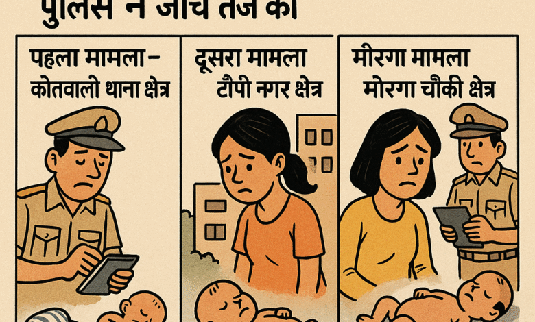 Korba कोरबा। जिले में तीन अलग–अलग क्षेत्रों में भ्रूण और नवजात शिशुओं की लाशें मिलने से सनसनी फैल गई। पुलिस ने तात्कालिक कदम उठाते हुए घटनास्थलों से सबूत जुटाए और सभी पहलुओं की गहन पड़ताल शुरू की।