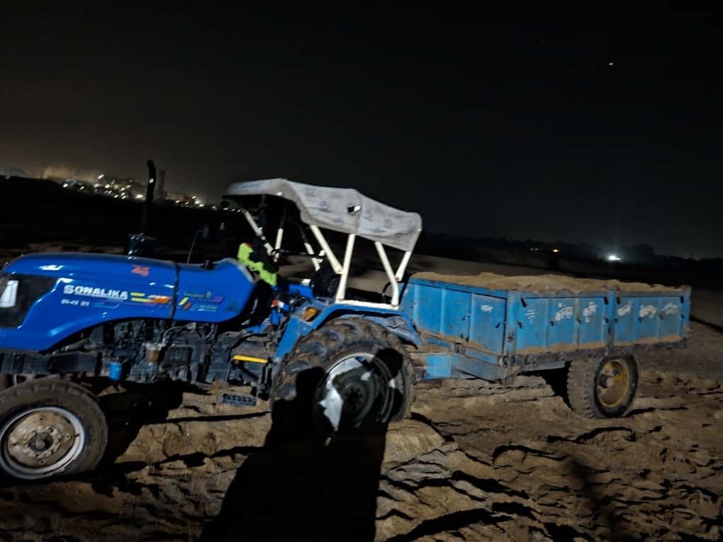 पीथमपुर क्षेत्र में छापामार कार्रवाई के दौरान चार ट्रैक्टर रोककर जांच की गई। ये सभी ट्रैक्टर रेत से भरे हुए थे और बताया गया कि आसपास के नालों से अवैध उत्खनन कर इन्हें भरा गया था। ग्रामीणों ने रात के समय भारी मात्रा में रेत निकासी की शिकायत भी की थी।