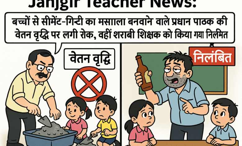 Janjgir Teacher News:– बच्चों से सीमेंट–गिट्टी का मसाला बनवाने वाले प्रधान पाठक की वेतन वृद्धि पर लगी रोक, वहीं शराबी शिक्षक को किया गया निलंबित