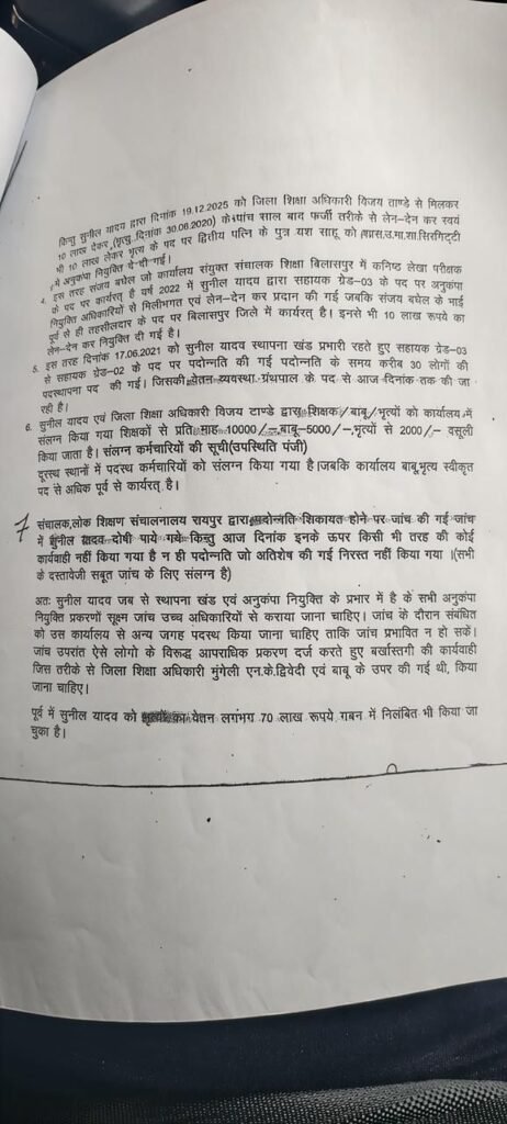 कार्यालयों में स्वीकृत पदों से अधिक कर्मचारियों को संलग्न रखा गया, जबकि स्कूलों में शिक्षक और स्टाफ की भारी कमी बनी रही। इस प्रक्रिया में भी सुनील यादव की भूमिका बताई गई है, जिन पर पहले भी वेतन और नियुक्ति से जुड़े आरोप लग चुके हैं।