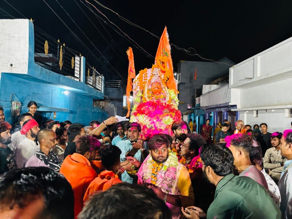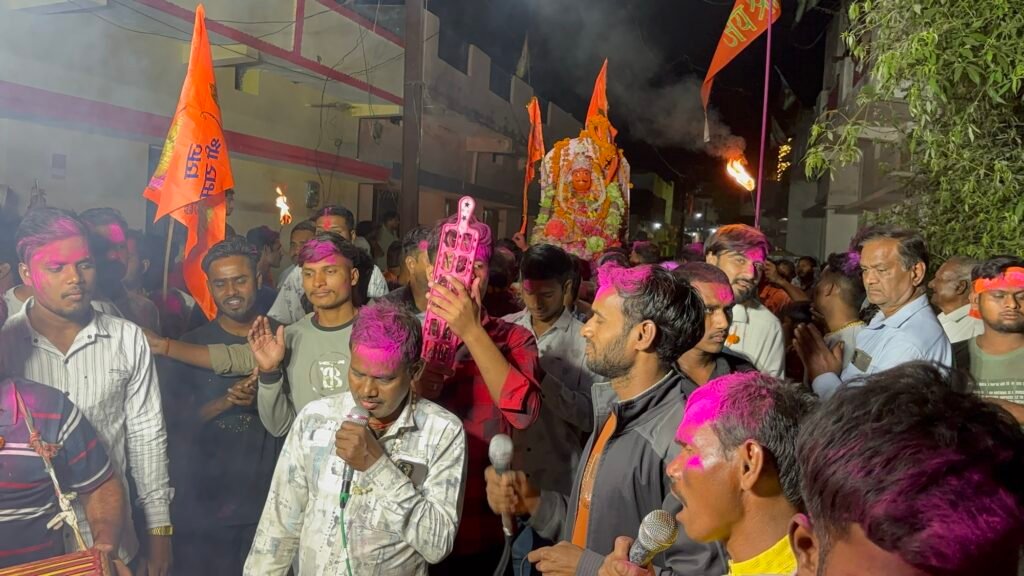 घड़ी में जैसे ही 11 बजते हैं, करैयापारा से एक आस्था का कारवां निकल पड़ता है। पालकी में विराजे हनुमानजी… आगे–आगे मशालें, साथ में मचल की गूंज, ढोल–नगाड़ों की थाप और “जय श्रीराम” के गगनभेदी नारे।