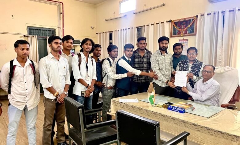 ज्ञापन सौंपने के मौके पर छात्र नेता राजा रावत, मानस ताम्रकार, राघवेंद्र दुबे, आदित्य साहू, चिंटू कोशले, संस्कार राजपूत, प्रशांत जायसवाल, ओम ताम्रकार और वंश ताम्रकार उपस्थित थे।