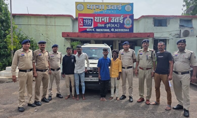 दुर्ग, 09 जुलाई 2025 दुर्ग जिले के उतई थाना क्षेत्र में बीते 3 जुलाई की रात हुए 20 वर्षीय युवक राजकुमार यादव की अंधे कत्ल की गुत्थी को पुलिस ने सुलझा लिया है। लूट के विरोध में हत्या करने वाले पांच आरोपी — जिनमें एक अपचारी बालक भी शामिल है — को पुलिस ने गिरफ्तार कर न्यायिक रिमांड पर भेज दिया है। आरोपियों के पास से घटना में प्रयुक्त हथियार, लूटी गई सामग्री और स्कॉर्पियो वाहन जब्त कर लिया गया है।